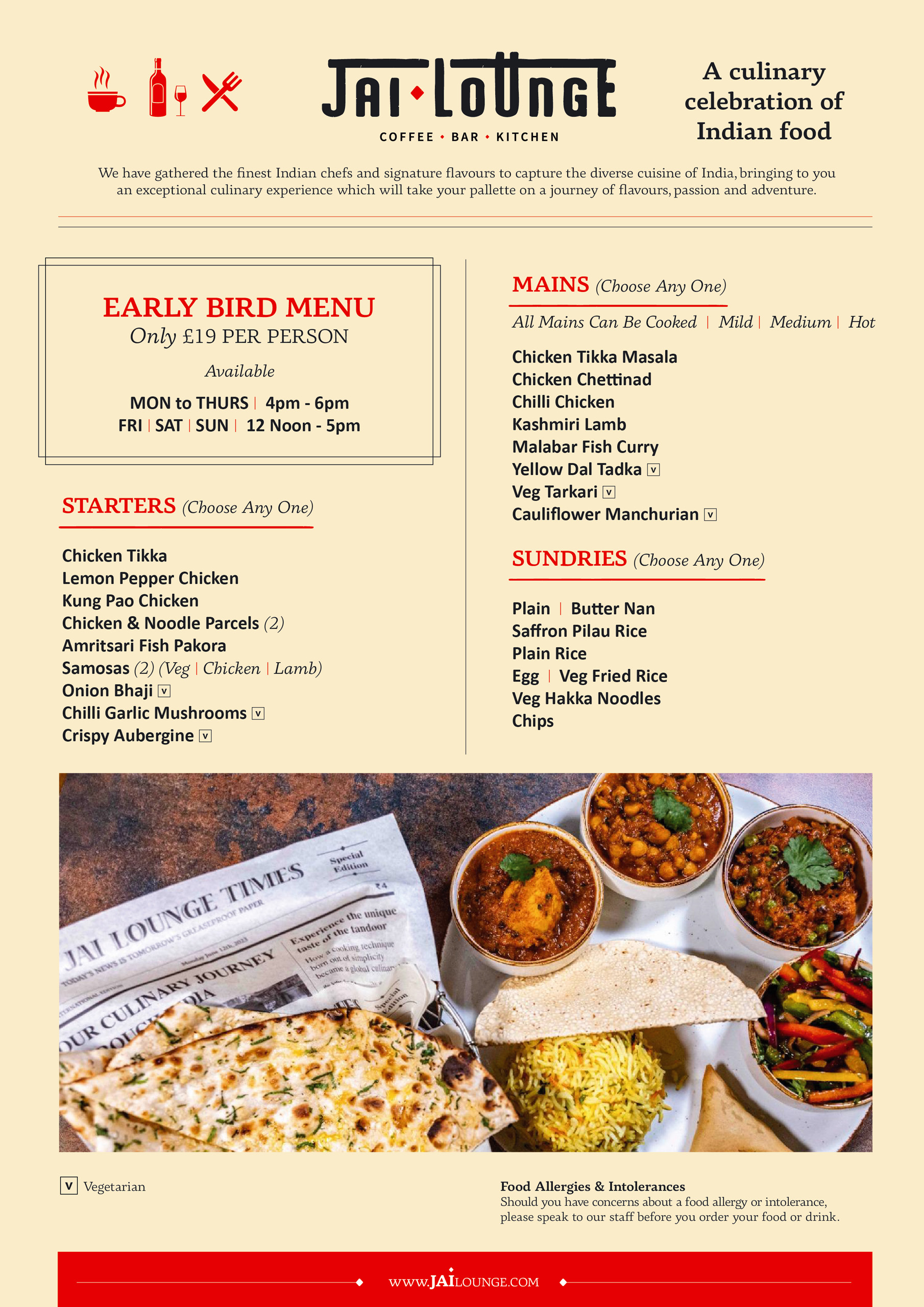 At Jai Lounge, we have gathered the finest Indian chefs and signature flavours to capture the diverse cuisine of India. We bring you an exceptional culinary experience which will take your palette on a journey of flavours, passion and adventure.